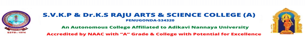 Prior to the founding of this Institution Parents of Penugonda, West Godavari district the rice bowl of Andhra Pradesh known for it’s mighty ever flowing river, the Godavari, the food giver of India and unique cultural values had to send their children to far off places for Pursuing U.G and P.G Courses. Both Parents and Students used to face several ordeals like transportation charges and exorbitant tuition fees etc. So Parents relinquished the idea of sending their children for pursuance of further studies. The future of the Students of this historically and culturally famous penugonda town was at stake, when it was at this crucial juncture some of the leading lights, Pro bono public activists and above all Philanthropists joined their minds and might together and formed into an association called S.V.K.P. Arts & Science College Association and in Chorus the association made Sri Kotla Venkataramaiah as the founder president, keeping at the back of their minds his committed selfless meritorious services he rendered. Thus this college came in to existence and became an oasis to several students in and around West Godavari District. In this connection it is quite germane to mention especially the name of the then local MLA Sri Vanka Satyanarayana a gentleman to the core in the field of malign politics, without whose combined contribution, the college would not have come to a reality. The college has been aptly named after the Presiding deity of Penugonda, Sri Vasavi Kanyaka Parameswari and the name of Dr.Kalidindi Suryanarayana Raju was added to the main name later as a token of gratitude for his huge generous donation, he gladly made. Thus this college acquired the name of S.V.K.P. & Dr.K.S. Raju Arts & Science College.